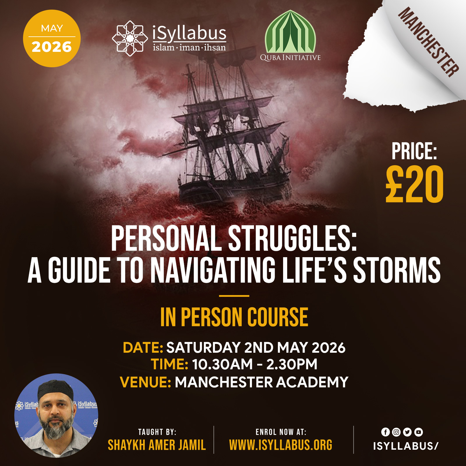 Join Sh Amer live & in-person across six UK cities as he explores some of the most common issues people struggle with and discusses tips on how to deal with them drawing from the Quran & Sunnah.